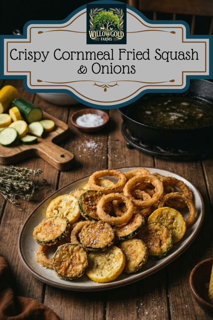 A Southern-style side dish featuring fresh zucchini, yellow squash, and sweet onion rings dipped in a light cornstarch and cornmeal batter. Fried until golden and crispy, these vegetables are the perfect way to enjoy the summer garden harvest.