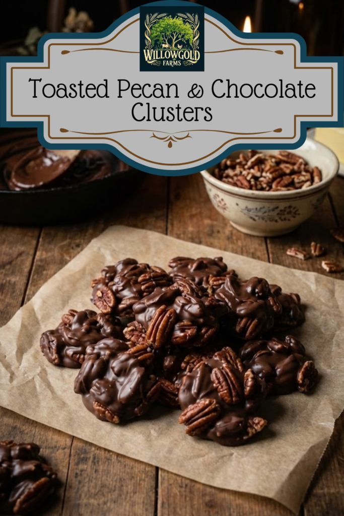 Keywords: chocolate pecan clusters, butter roasted pecans, 3 ingredient dessert, homemade candy, chocolate turtle clusters, holiday treats, giftable desserts, pecan pralines, easy chocolate recipe, candy coating recipes